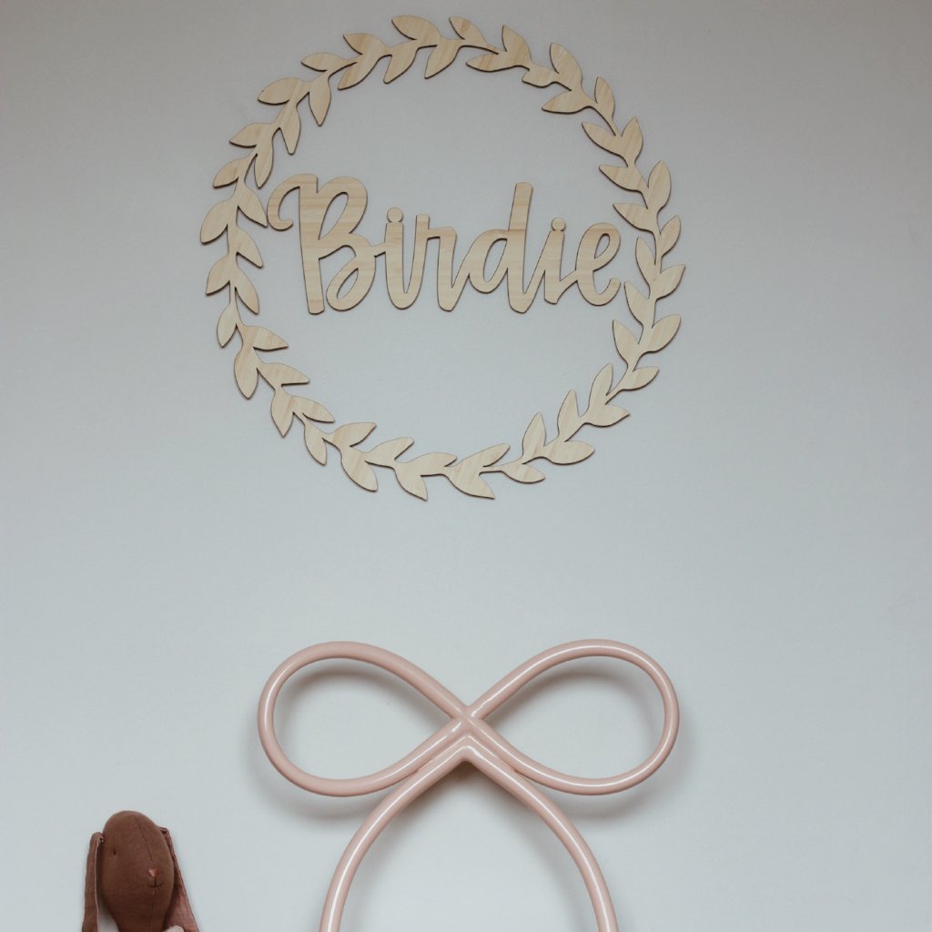 A stunning leafy-look bamboo wreath, especially made to go around our personalised wall names.