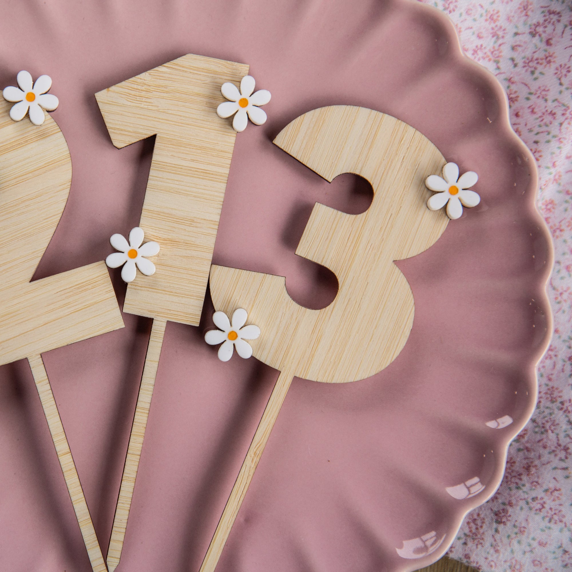 Handcrafted from high-quality bamboo, each topper showcases intricate daisy details that are cut from glossy white acrylic. The best part? Its petite size makes it a budget-friendly option, allowing you to add a special flair without breaking the bank! Light and easy to place, this topper ensures your cake will be the star of the party.