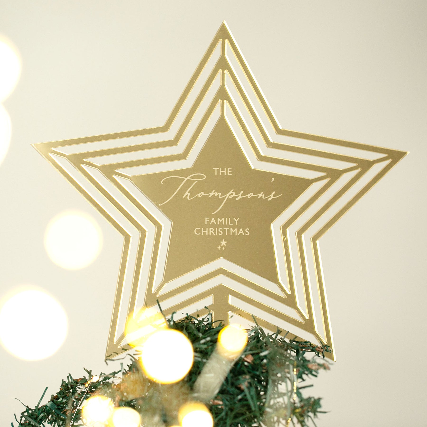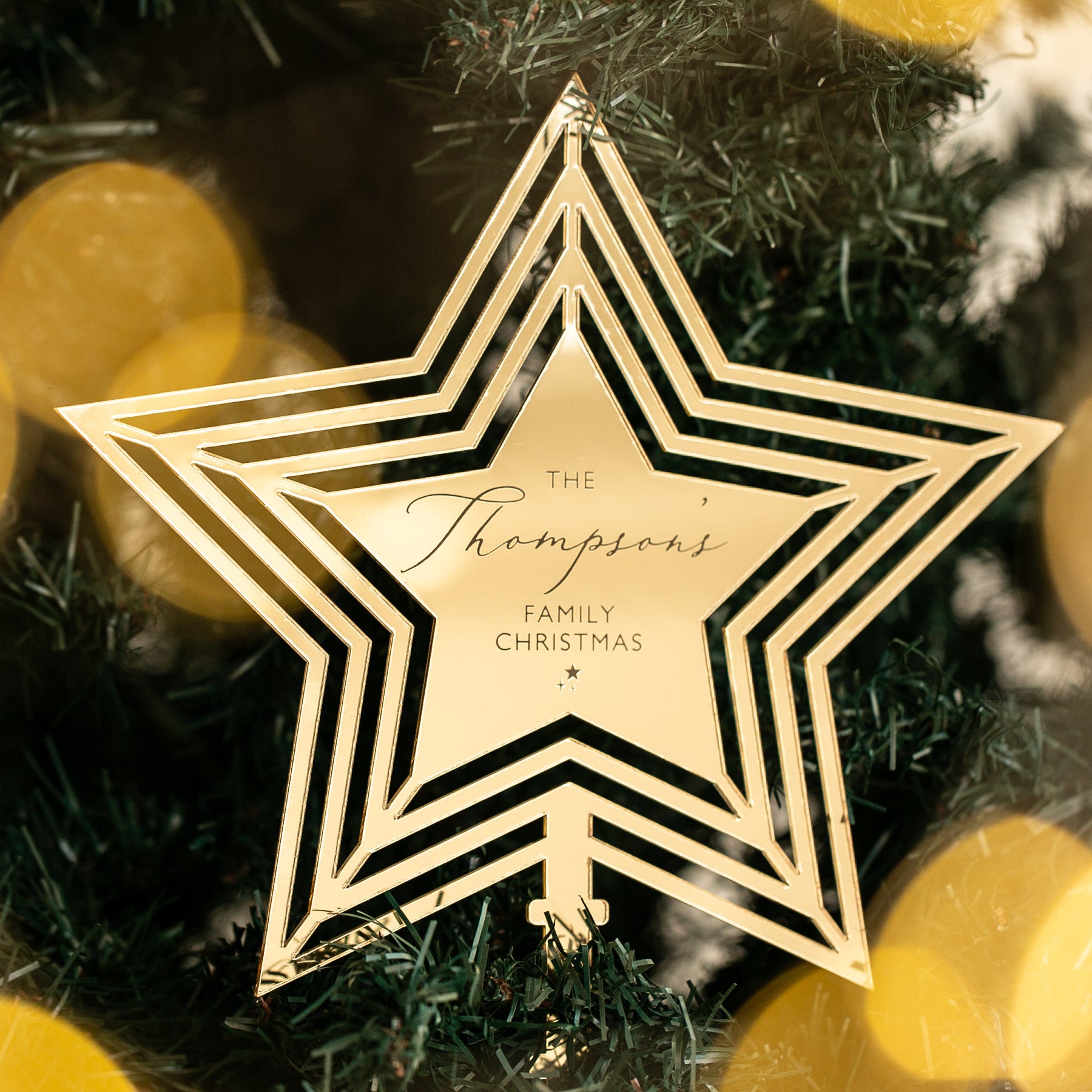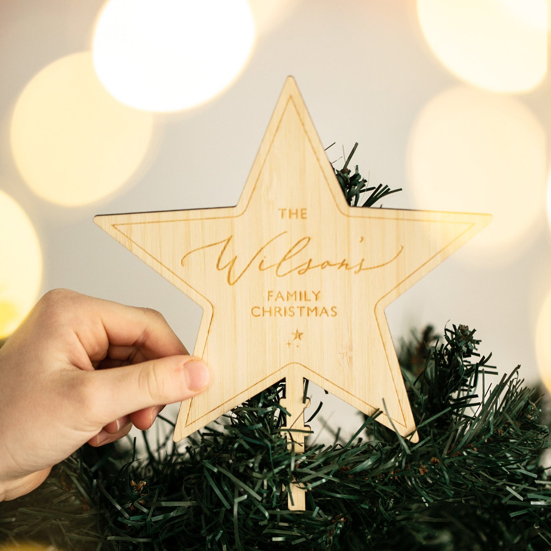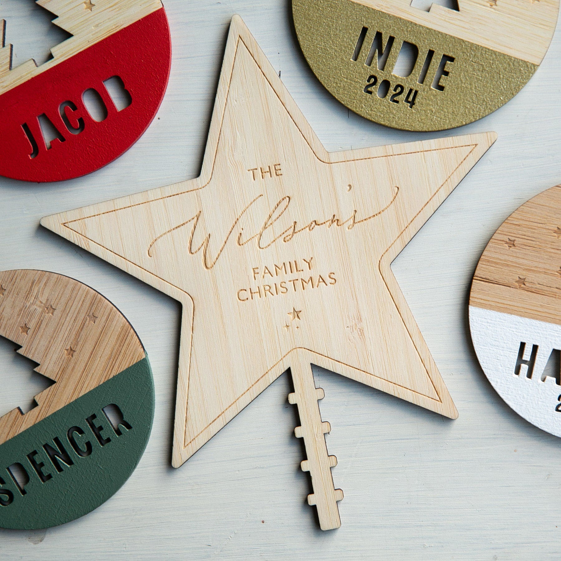 Each star is beautifully laser-cute and engraved by our team with your custom text and made from high-quality materials that will dazzle atop your tree this Christmas.
