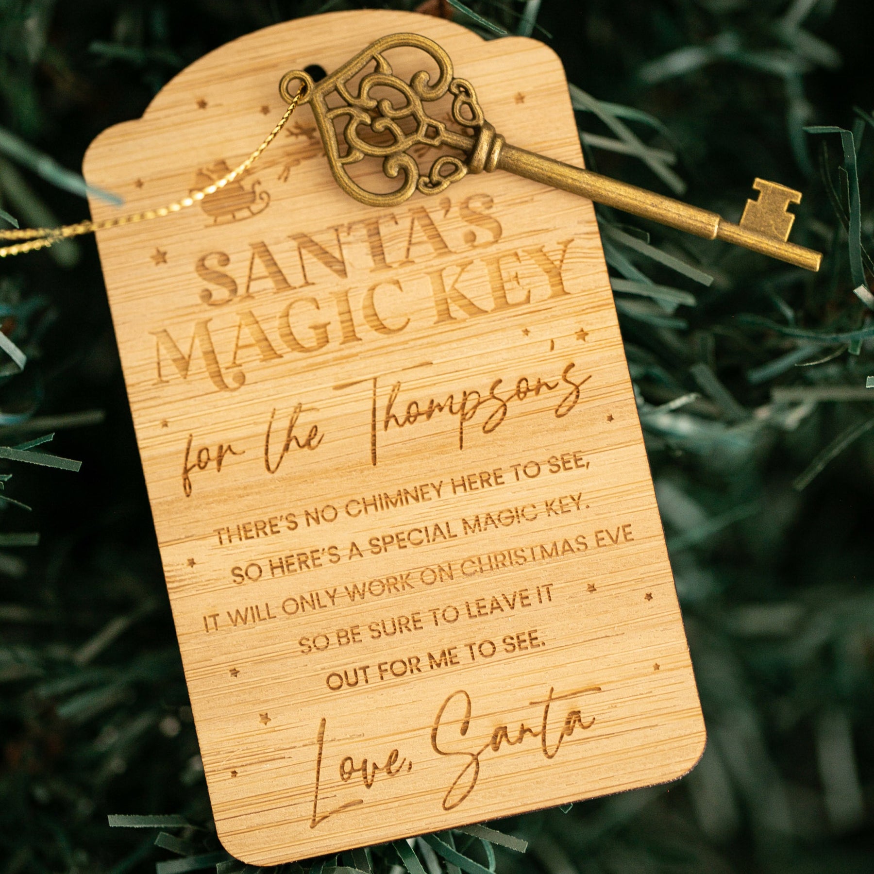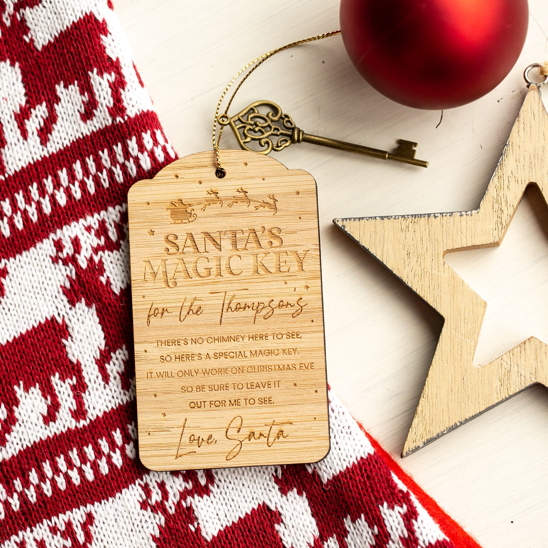 This beautifully engraved wooden tag comes with a charming vintage-style key, specially designed to let Santa into homes without chimneys.