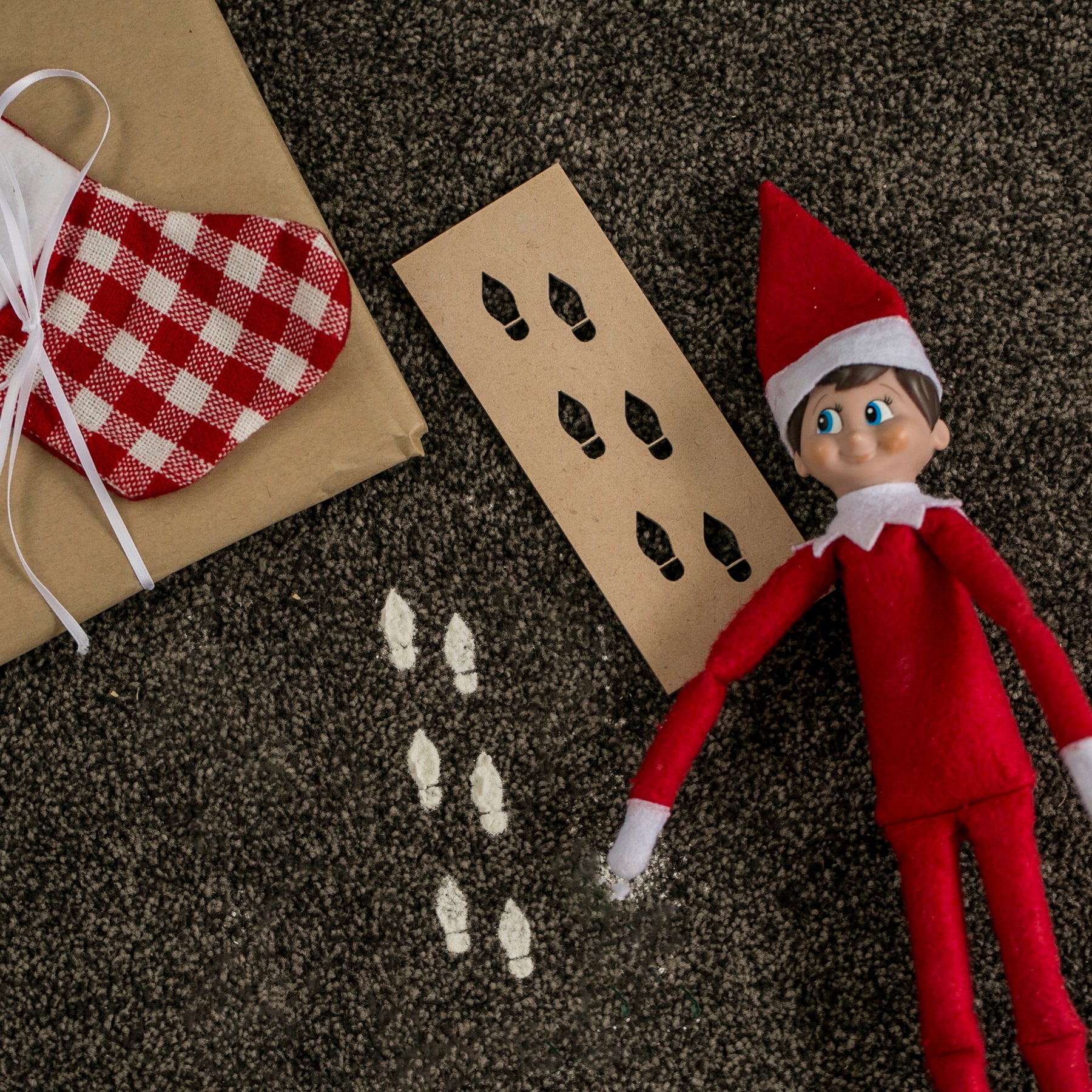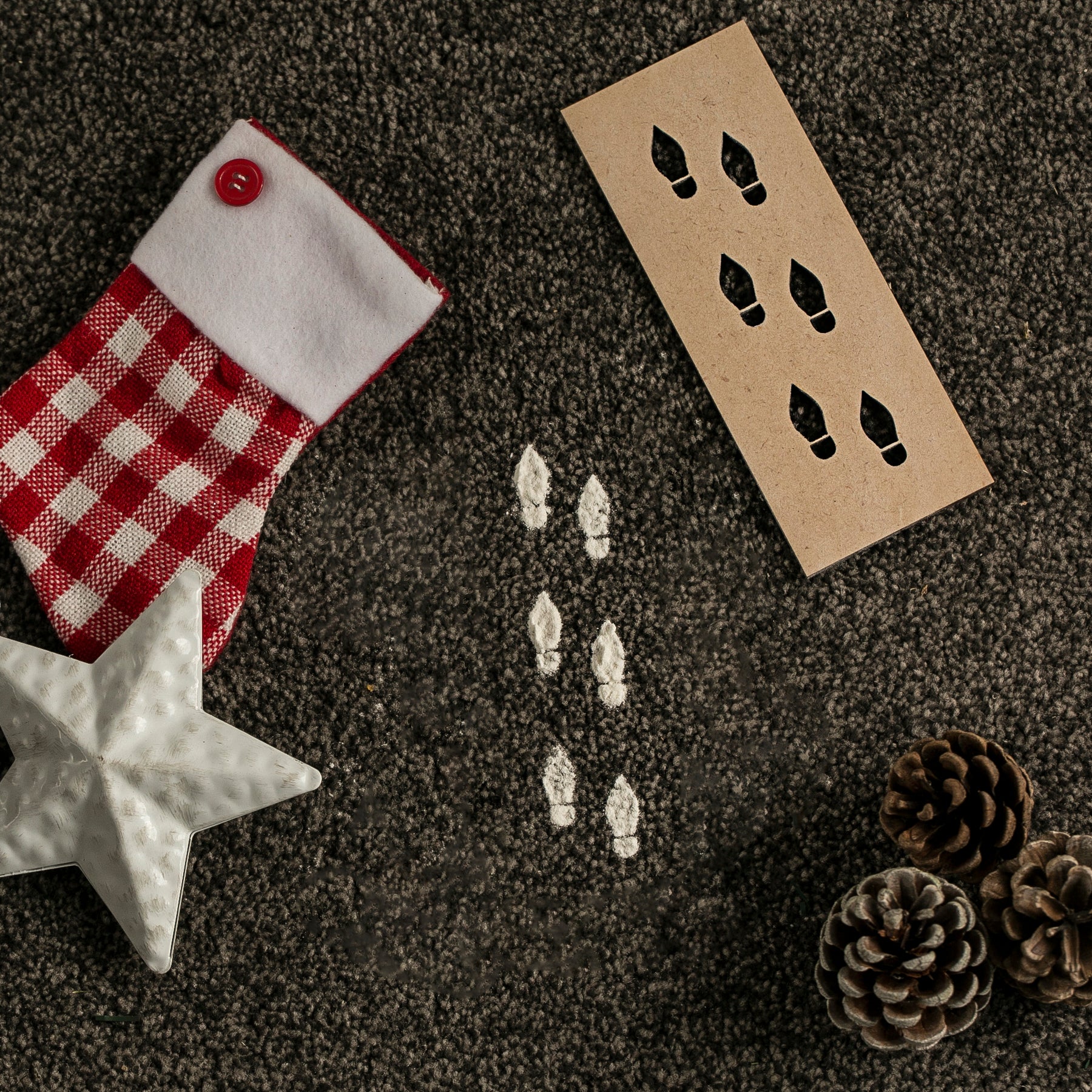 Each template features 3 sets of little Elf footprints. Simply pop on the carpet and dust with something that will vacuum up easily enough (flour etc).