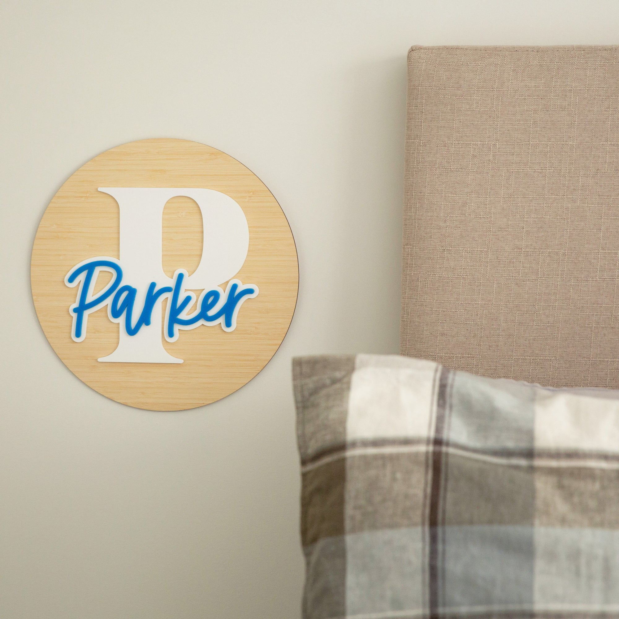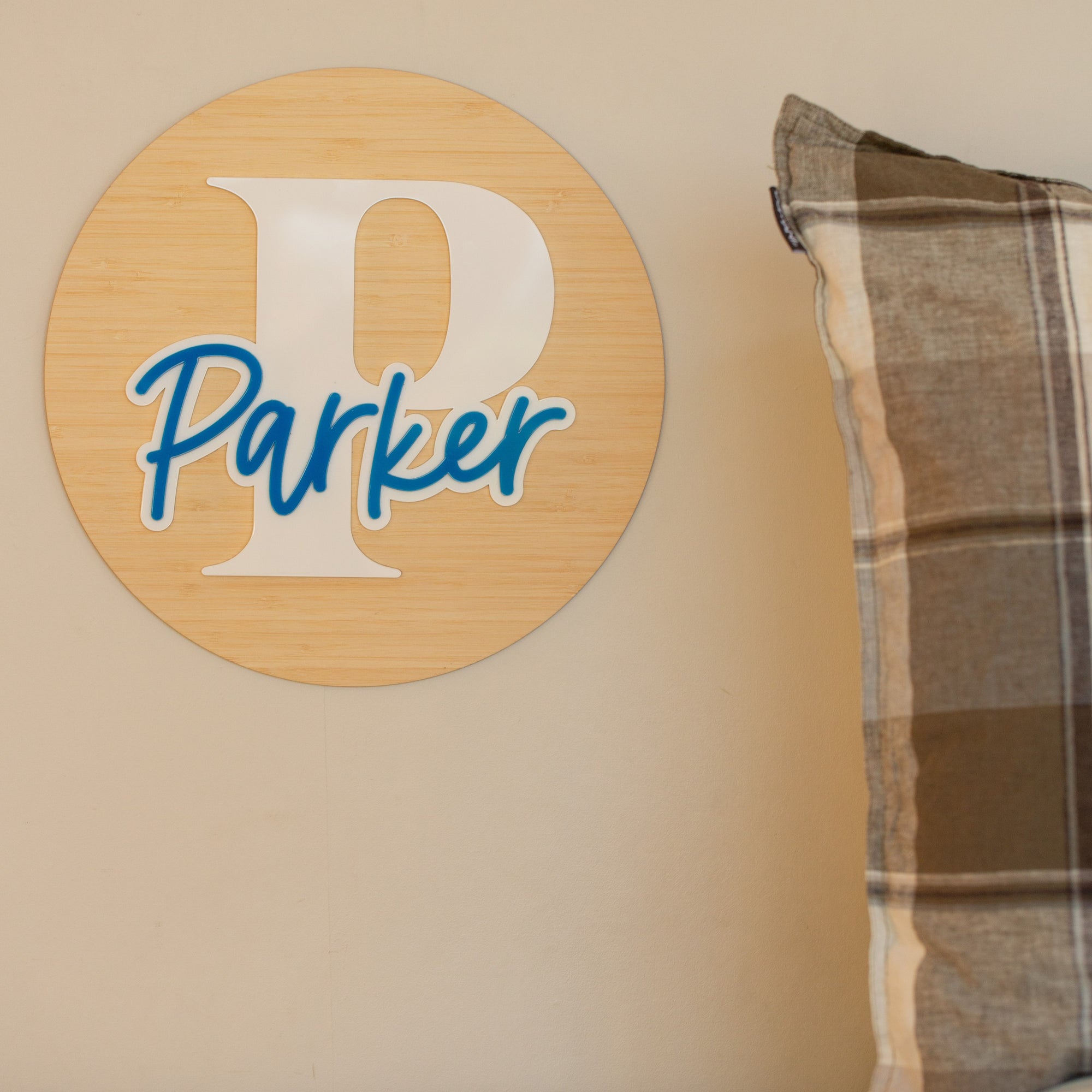 Crafted from high-quality bamboo and acrylic, the plaque features a bold initial and a beautifully layered name in a contrasting colour, creating a striking and stylish combo. Be as contrasting or as harmonious as you please with your colour choices!