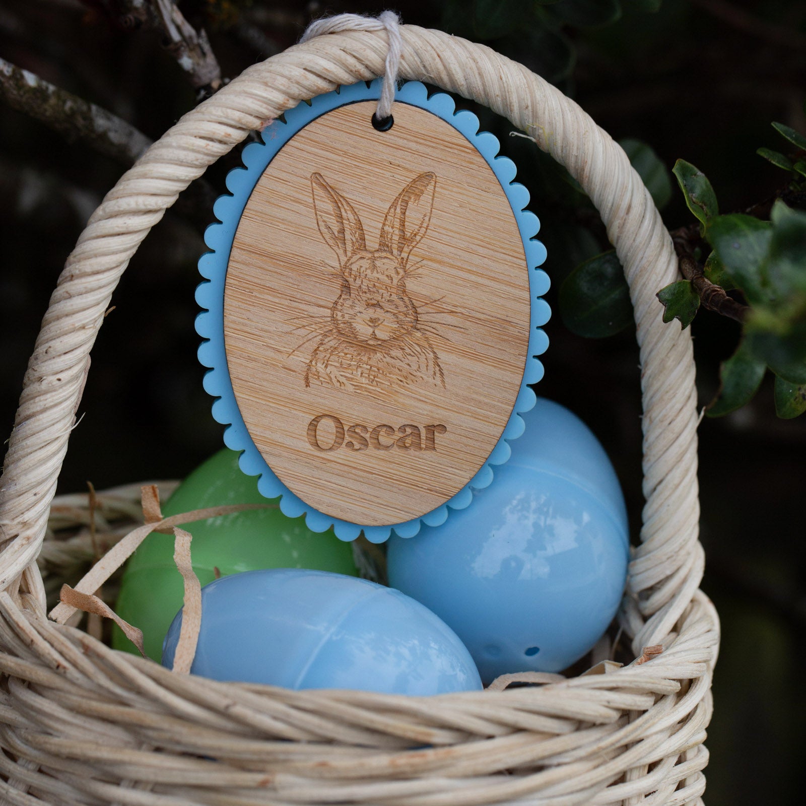 Please note: no baskets, chocolate or accessories pictured are included; you're purchasing the personalised Easter tag only.